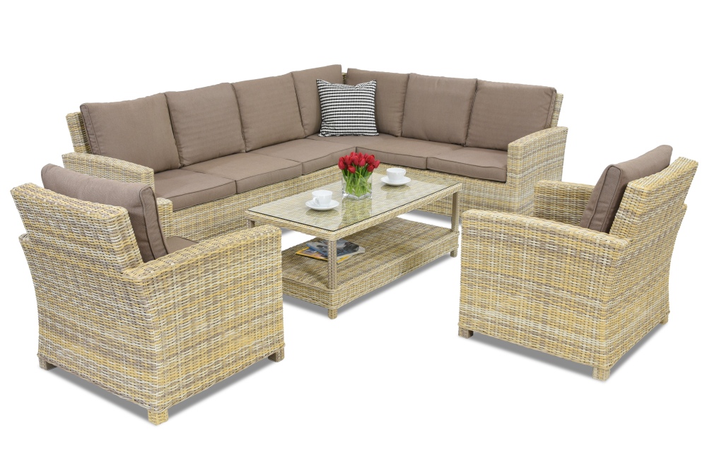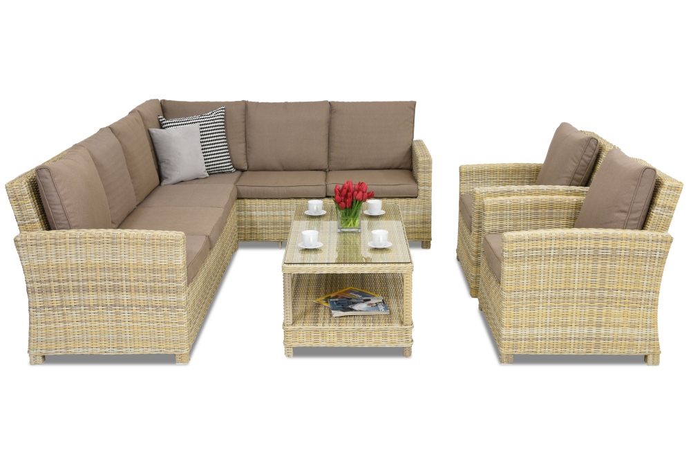 - Gli scheletri dei mobili sono stati creati da alluminioche sono rivestiti con un materiale naturale di imitazione technorattan.